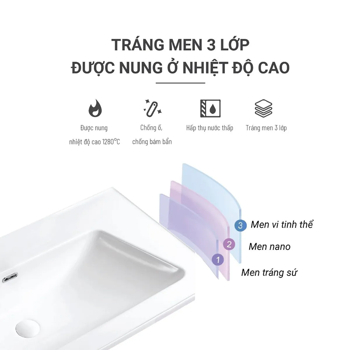 - Chất liệu sứ cao cấp với công nghệ phủ men nano: Sản phẩm này được chế tạo bằng công nghệ phủ men nano tiên tiến, tạo nên một lớp men chống khuẩn hiệu quả. Điều này không chỉ ngăn chặn hiện tượng ố vàng, chống dính, và ngăn sự bám bẩn, mà còn đảm bảo tính vệ sinh cho không gian phòng tắm.
