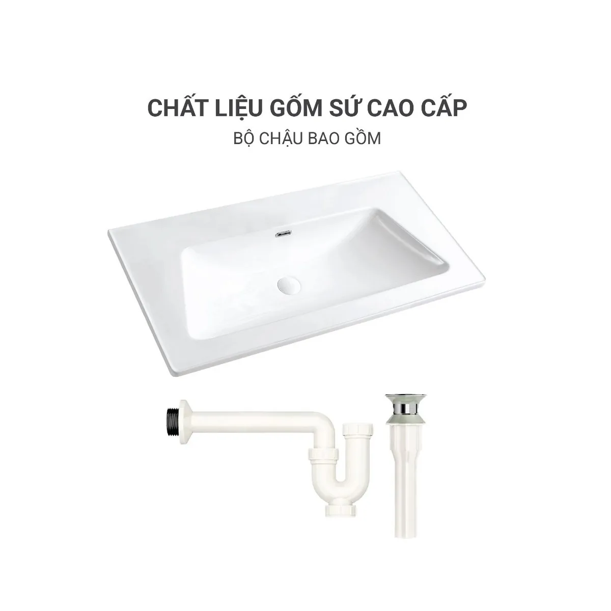 - Loại chậu: Hình chữ nhật với thiết kế âm bàn
