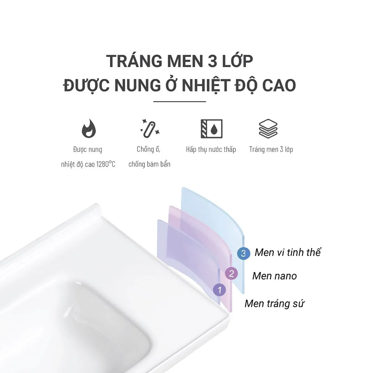 - Chất liệu sứ cao cấp với công nghệ phủ men nano: Sản phẩm này được chế tạo bằng công nghệ phủ men nano tiên tiến, tạo nên một lớp men chống khuẩn hiệu quả. Điều này không chỉ ngăn chặn hiện tượng ố vàng, chống dính, và ngăn sự bám bẩn, mà còn đảm bảo tính vệ sinh cho không gian phòng tắm.