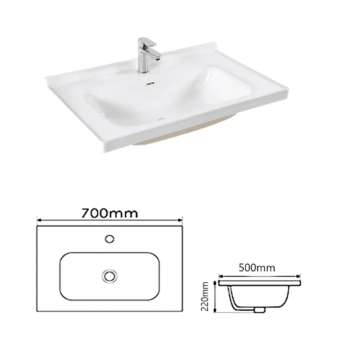 - Loại chậu: Hình chữ nhật với thiết kế âm bàn