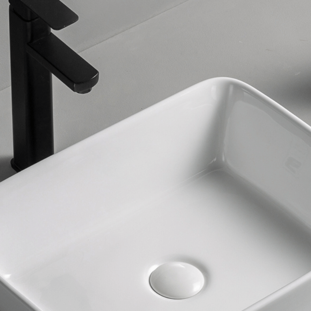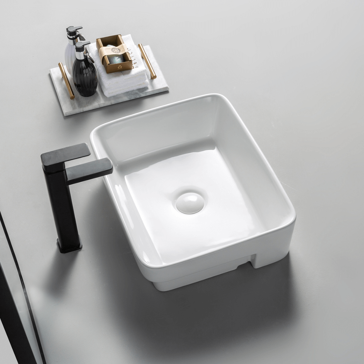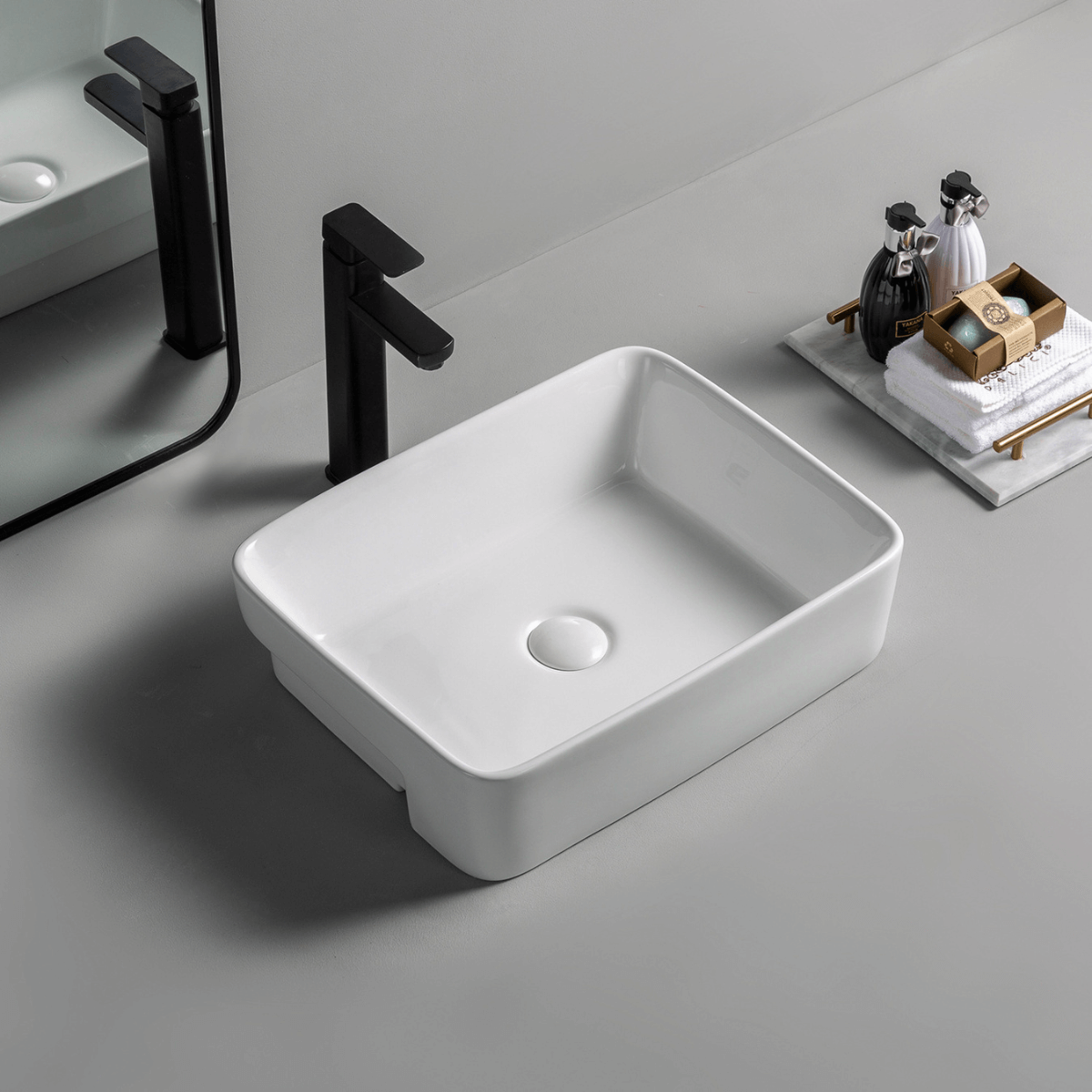 Chậu có hình chữ nhật và thiết kế dương bàn, cho phép bạn đặt nó trên bề mặt hoặc bàn trong không gian phòng tắm một cách tiện lợi.